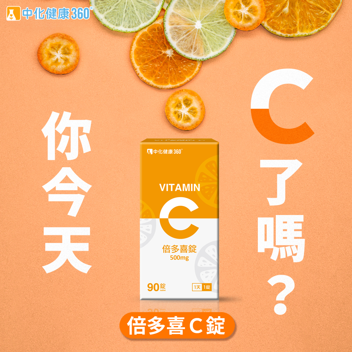 中化健康360 倍多喜維他命C錠(90錠/瓶)